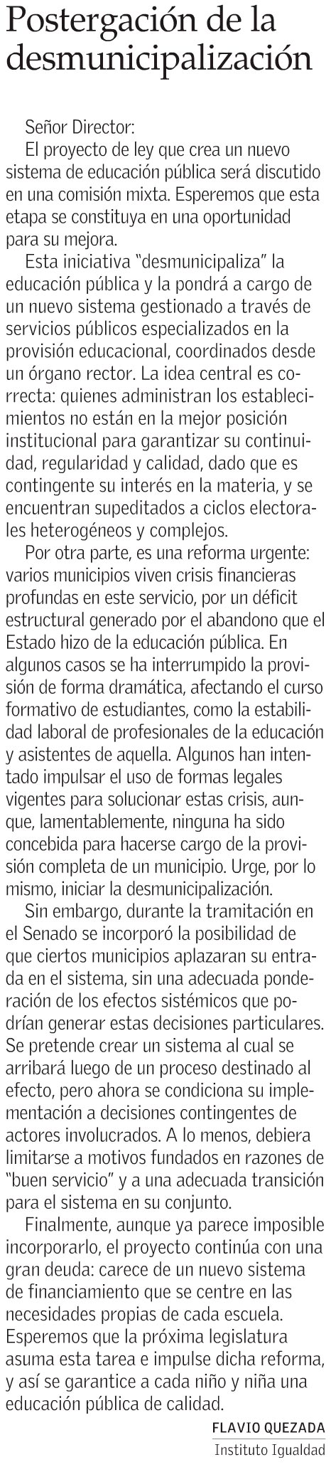 Archivo Proyecto de Desmunicipalización, El Mercurio, 15 de Septiembre 15 septiembre, 2017 Archivo Comparte 0 minutos de lectura Comparte Comparte este artículo Facebook Whatsapp Whatsapp Copia el link