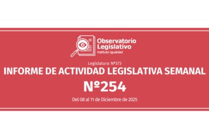 El Informe de Actividad Legislativa Semanal es elaborado por el Observatorio Legislativo del Instituto Igualdad y otorga a sus lectores una síntesis de los principales acontecimientos legislativos desarrollados en el Congreso Nacional durante la última semana.
