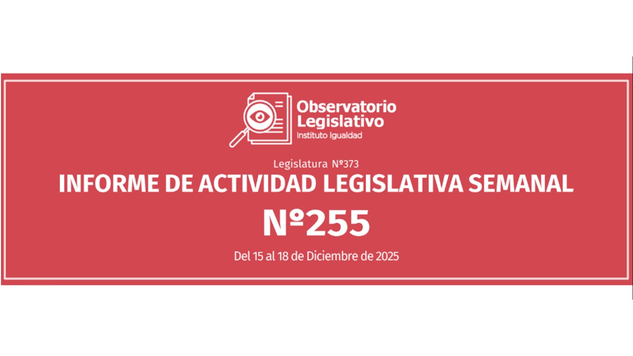 El Informe de Actividad Legislativa Semanal es elaborado por el Observatorio Legislativo del Instituto Igualdad y otorga a sus lectores una síntesis de los principales acontecimientos legislativos desarrollados en el Congreso Nacional durante la última semana.